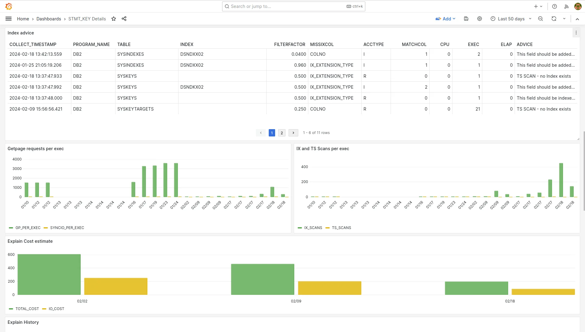 Grafana Dashboards clearly show which SQL statements have the highest costs and should be the focus of optimization efforts.